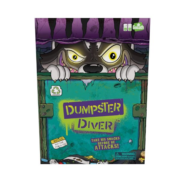 - All components store safely inside the game unit, so pieces don't get lost - Includes 1 Dumpster with Raccoon, 1 Garbage Bag, 16 Pieces of Food (6 Fresh Food: 2x milk carton, 2x honey pot, 2x broccoli) (10 Half-Eaten Food: 2x apple, 2x fish bone, 2x hot dog, 2x banana, 2x chocolate bar), 1 Player Claw, 1 Die, 1 Sticker Sheet, and Complete Instructions