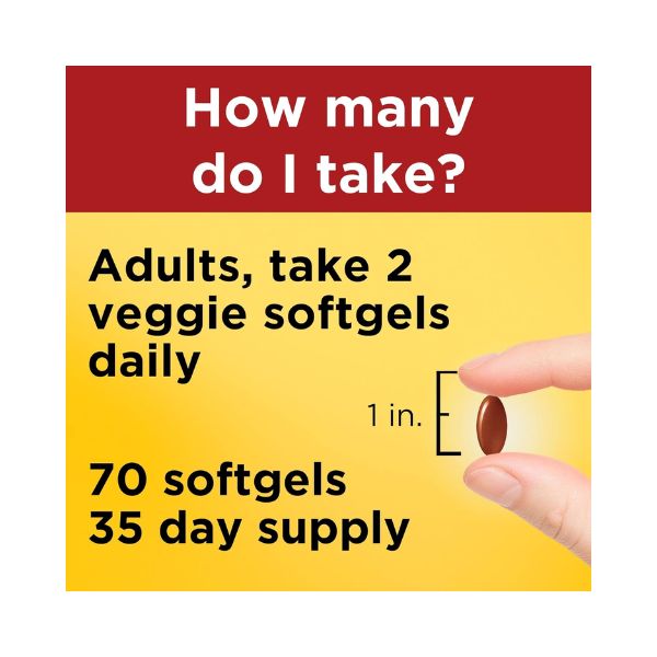 - Brain, Eye and Heart Supplement: contains one 70 count bottle of Nature Made Algae Omega 3 540 mg per serving Softgels for a 35-day supply