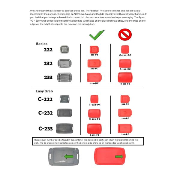- Included: (1,2,4) Pyrex Basics 3qt Oblong 233 Glass Dish & (1,2,4) Pyrex 233-PC Red Lid