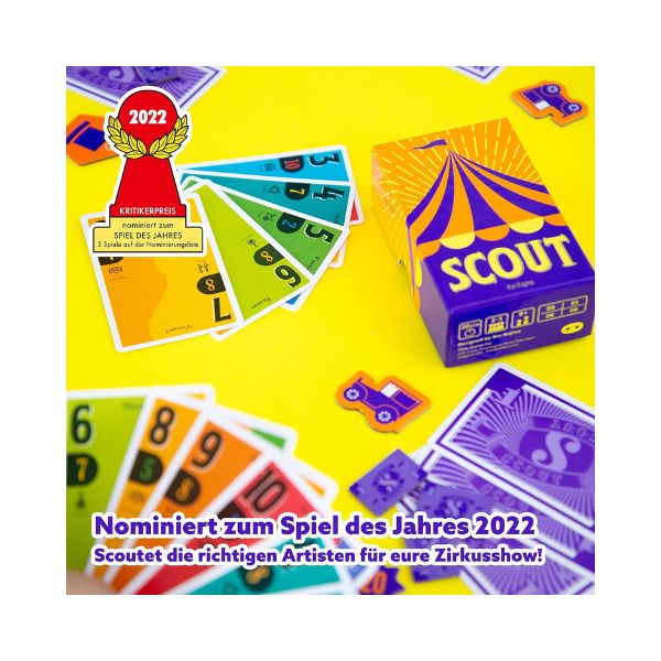 - In "SCOUT", there is a new theme along with new artwork, playable with 2-5 players, scoring chips, and various other changes.